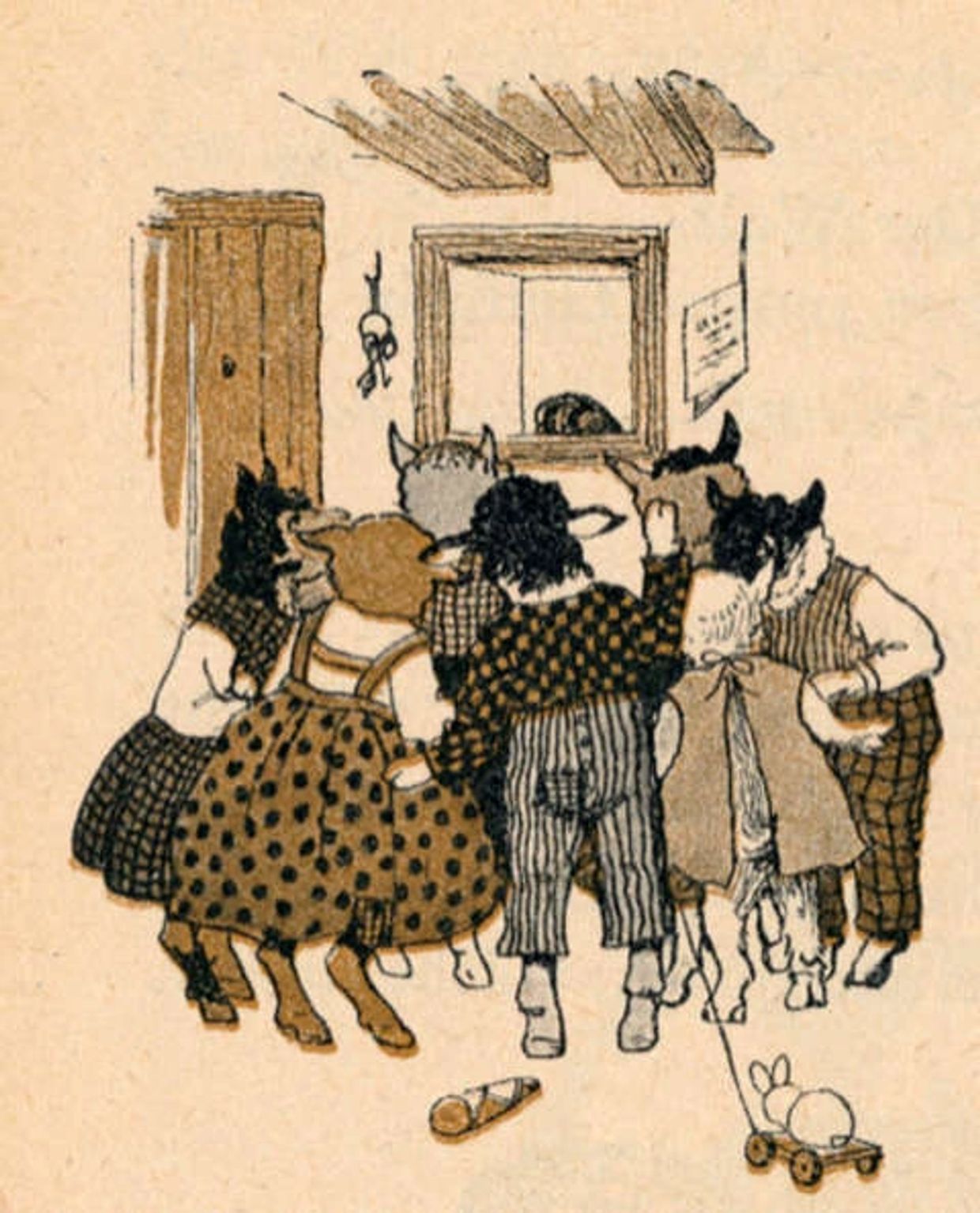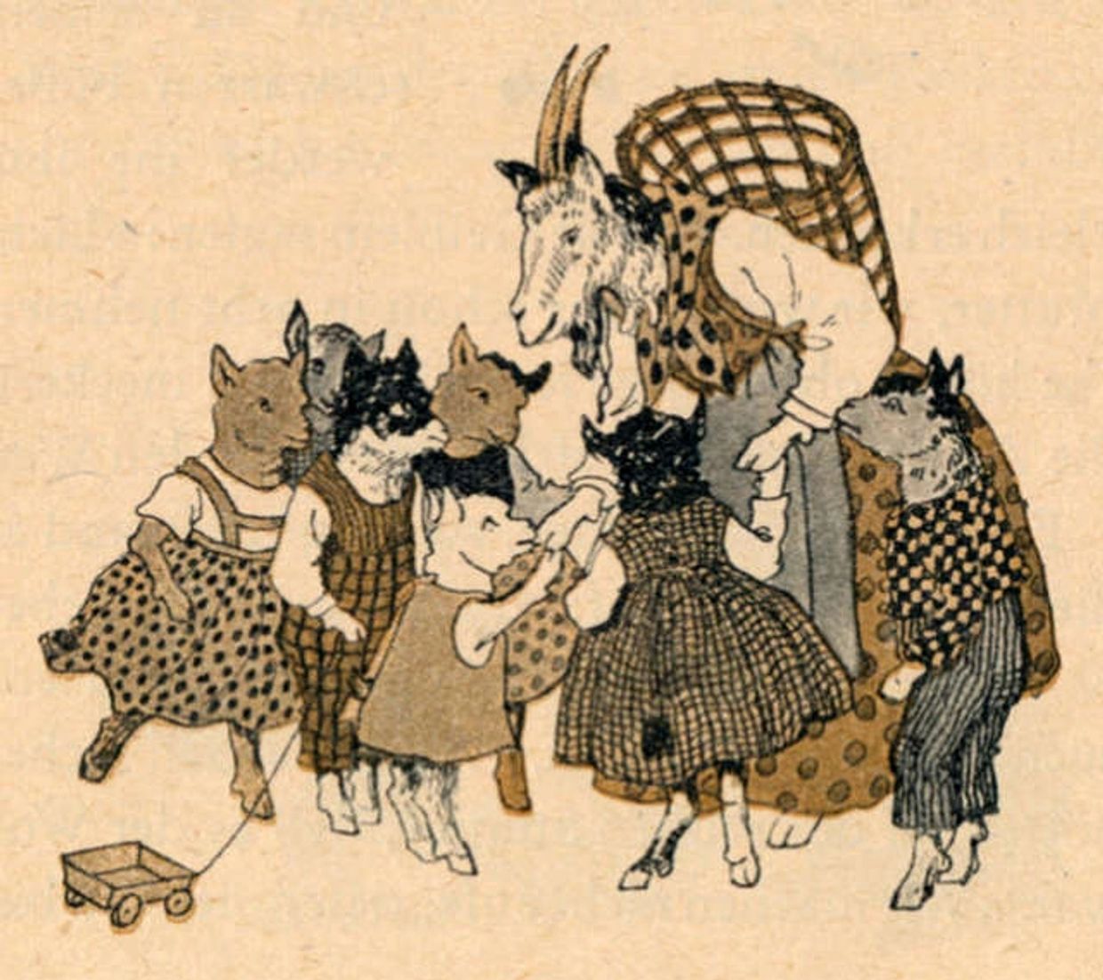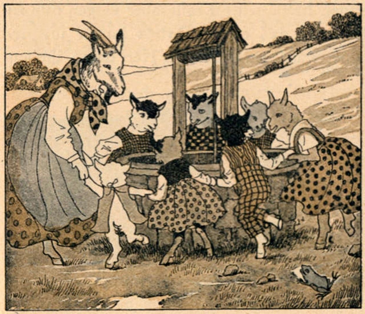 The story starts with the mother goat leaving home. She has seven kids and obviously no husband. She needs to run some errands and her children, seven little kids, need to wait for her all alone.