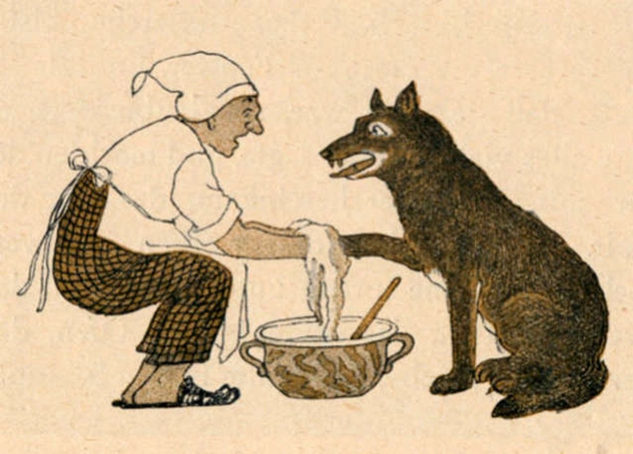 Not for long, though. The wolf is a persistent beast. He is smart enough to know why he couldn't enter the house full of delicious goat meat. His paws betray him, so he visits the baker and demands to cover them with flour.